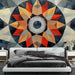 Tämä tapetti erottuu koukuttavalla geometrisellä kuviolla, joka on taitavasti muotoiltu tarkoilla muodoilla ja värikkäillä väreillä. Punaisen, oranssin ja sinisen sävyt kietoutuvat yhteen luoden modernin ja rohkean designin, tuoden energiaa mihin tahansa huoneeseen.