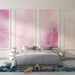 Löydä elegantti Tapetti, joka esittelee stilisoituja palmunlehtiä, esitettyinä vaaleanpunaisina ja kultaisina sävyinä. Jokainen paneeli tarjoaa pehmeän värileikin, joka tuo lämpöä ja tyylikkyyttä sisustukseesi. Hienovaraiset kuviot on suunniteltu luomaan rentouttava ja hienostunut ilmapiiri.