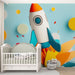 Tämä lumoava tapetti korostaa tylstylettyä rakettia, joka nousee räjähtävien värien joukosta sinisellä taustalla. Suunnittelu leikkii korkeiden graafisten elementtien kanssa, kuten ympyröiden ja kirkkaiden värien räjähdysten kanssa, luoden leikkisän ja inspiroivan ilmapiirin, joka sopii täydellisesti lapsen huoneeseen tai leikkialueelle.