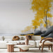 Neutraalien kivien ja lehtien keltaisten räjähdysten välinen kontrasti luo modernin ja luonnollisen ilmapiirin, joka on ihanteellinen nykyaikaisille sisätiloille. Täydellinen olohuoneeseen tai makuuhuoneeseen, tämä kuvio kannustaa rentoutumiseen ja mietiskelyyn.