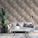Yhtenäisen sisustuksen saavuttamiseksi harkitse tämän tapetin yhdistämistä muihin geometrisiin kuvioihin tai samankaltaisiin väripaletteihin säilyttääksesi yhtenäisen ja elegantin tunnelman.