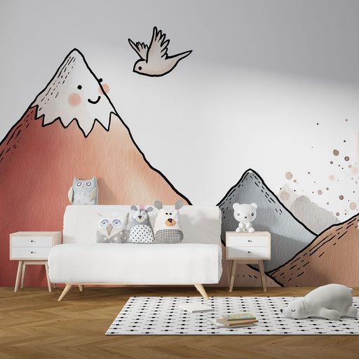 WonderMuralOvaj mural tapet nudi veličanstvenu ilustraciju stiliziranih planina u nježnim i toplim tonovima, u pratnji nestašnog ptica koji leti iznad. Nijans...