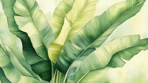 WonderMuralOva tapeta ističe stilizirane listove banane, stvorene tehnikom akvarela, nudeći živopisan i dinamičan izgled. Različite nijanse zelene, od svjetli...