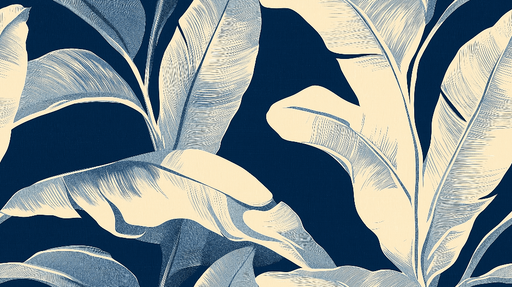 Prikaži sve detaljeTapeta banana | Listovi banane u mornarsko plavoj boji na svijetloj pozadini