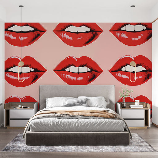 WonderMuralOva muralna tapeta sadrži zanosan uzorak sastavljen od stiliziranih crvenih usana, savršeno nacrtanih i raspoređenih na mekom gradijentnom pozadini...