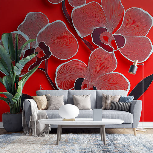 WonderMuralOtkrijte naš Mural Wallpaper s prekrasnim uzorkom stiliziranih orhideja, s nježnim obrubima na svijetlo crvenoj pozadini. Ovaj hrabri dizajn donosi...