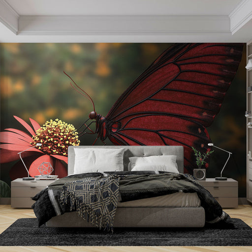 WonderMuralOva Tapeta prikazuje prekrasnog crvenog leptira, čije raširene krila su naglašena suptilnim crnim akcentima, stvarajući upečatljiv vizualni efekt. ...