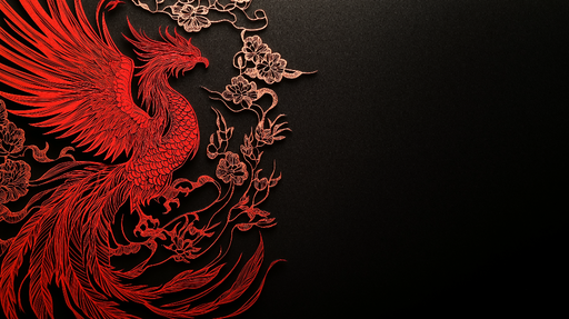 Prikaži sve detaljeTapeta feniks | Elegantni crveni feniks okružen cvijećem na crnoj pozadini