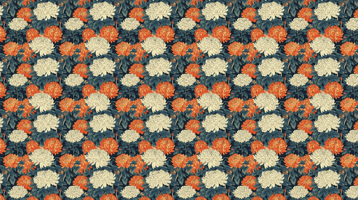 Prikaži sve detaljeCvjetni Tapete | Uzorak krizantema u toplim nijansama na tamnoj pozadini