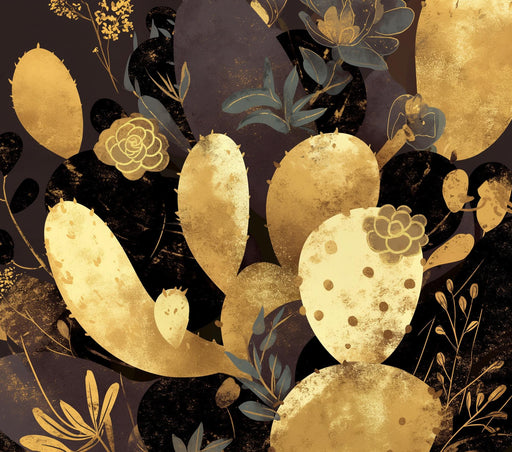 Flare ArtsOva tapeta prikazuje prekrasan vrt kaktusa šljive u zlatnim i crnim tonovima. Okrugli i bodljikavi kaktusi su nježno ilustrirani umjetničkim dodiri...