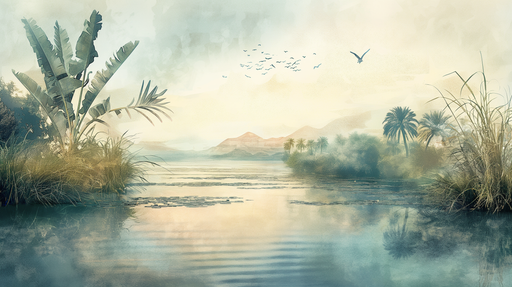Prikaži sve detaljeTapeta Stari Egipat | Nil i cvjetovi papirus