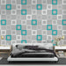 Tapeta Geometrijski zidni papir | Tirkizni i sivi kvadrati