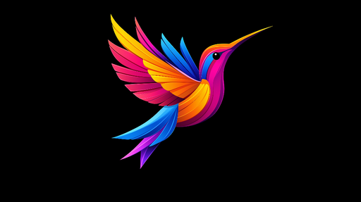 Prikaži sve detaljeTapeta ptica | Stilizirana kolibrić s jarkim bojama na crnoj pozadini
