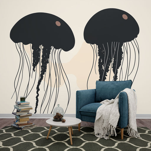 WonderMuralOvaj mural s tapetom s minimalističkim dizajnom prikazuje crne meduze u silueti, otkrivajući njihovu ljepotu i misteriju na umjetnički način. Svije...