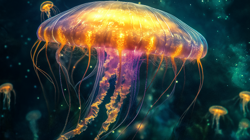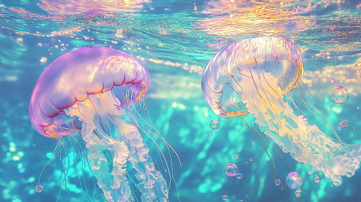 Prikaži sve detaljeJellyfish tapeta | Elegantne svjetleće meduze na oceanskoj pozadini