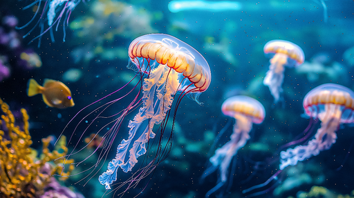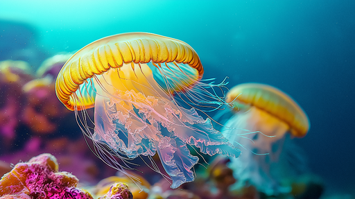 Prikaži sve detaljeTapeta meduza | Plutajuće meduze s jarkim i prozirnim bojama