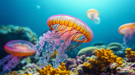 Prikaži sve detaljeTapeta meduza | Šarene meduze koje lebde u oceanu elegancije