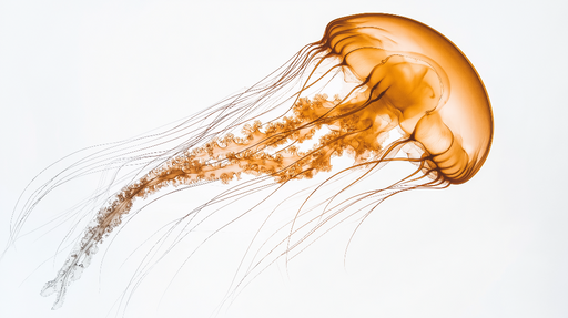 Prikaži sve detaljeTapeta meduza | Prozirne narančaste meduze na bijeloj pozadini