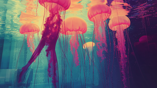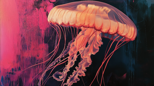 WonderMuralOtkrijte naš zanosni mural s tapetom koji prikazuje veličanstvenu meduzu, graciozno plutajući u oceanu boja. Prozirni uzorci i živopisne nijanse st...