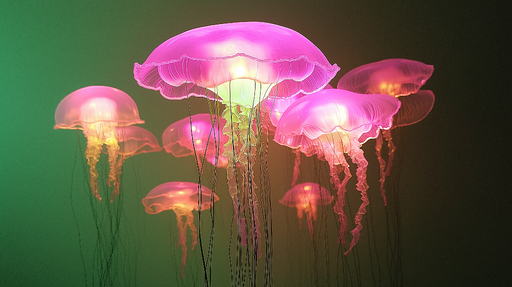 WonderMuralOva zapanjujuća muralna tapeta prikazuje veličanstveni uzorak šarenih meduza koje plutaju u živopisnim nijansama ružičaste i zelene boje. Luminesce...