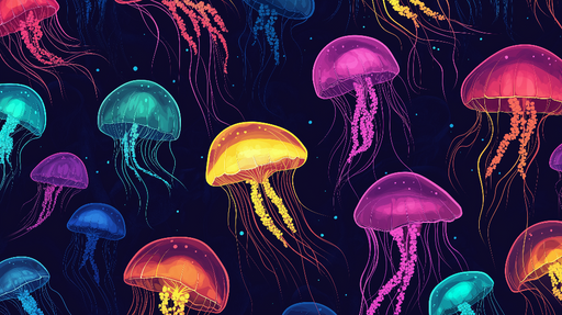 Prikaži sve detaljeTapeta jellyfish | Fascinantan uzorak šarenih meduza na crnoj pozadini