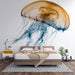 Naš muralni zidni papir prikazuje veličanstvenu meduzu u toplim nijansama narančaste i plave boje, stvarajući fascinantan i umirujući vizualni učinak. Detaljni dizajn ističe nježne konture morskog života, s tekućim pipcima koji donose osjećaj pokreta.
