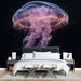 Ova jedinstvena tapeta s zidom prikazuje veličanstveni uzorak svjetlećih meduza koje se kreću u crnom svemirskom pozadini, posuti sjajnim zvijezdama. Kombinacija nježnih nijansi ružičaste i plave evocira umirujući sjaj dubina oceana dok dodaje dašak kozmičke tajne.