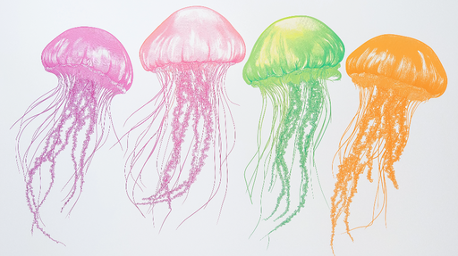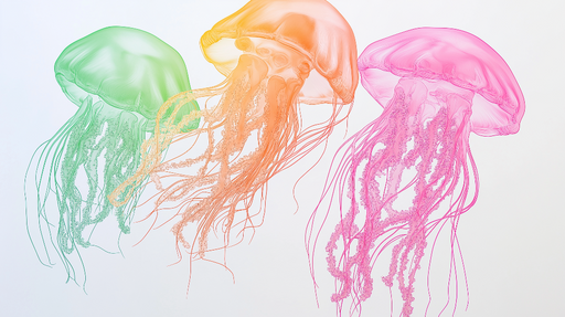 Prikaži sve detaljeŠarene meduze tapeta | Delikatne meduze s jarkim i prozirnim nijansama