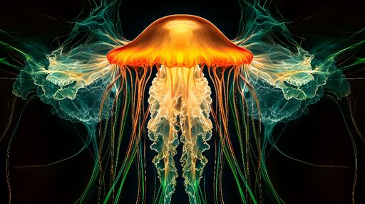Prikaži sve detaljeTapeta meduza | Elegantan dizajn s narančastim i plavim nijansama