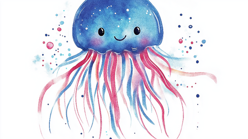 Prikaži sve detaljeTapeta meduza | Akvarel ilustracija nasmijane meduze s živopisnim bojama