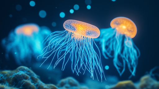 Prikaži sve detaljeTapeta meduza | Sjajne meduze u dubokom oceanu