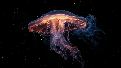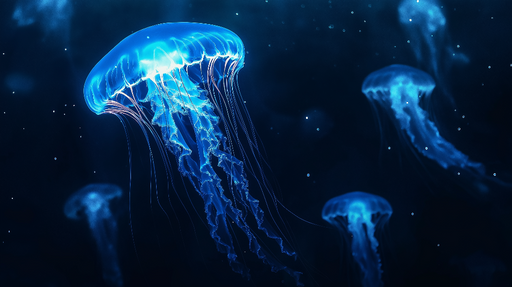Prikaži sve detaljeTapeta meduza | Luminescentne meduze na zvjezdanom crnom pozadini