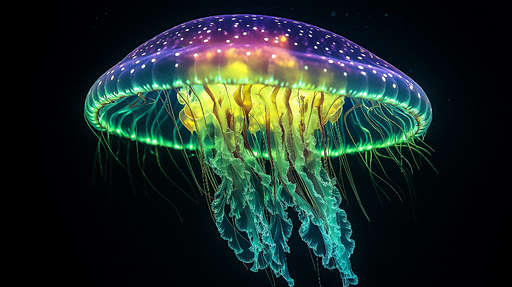 Prikaži sve detaljeTapeta meduza | Živopisne šarene meduze na crnoj pozadini