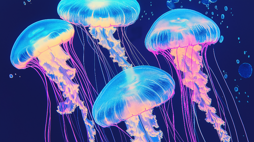 Prikaži sve detaljeTapeta meduza | Luminescentne meduze u nijansama ružičaste i tirkizne