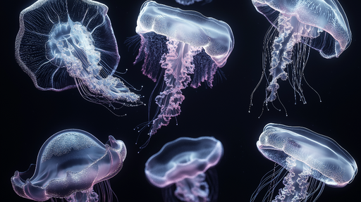 Prikaži sve detaljeTapeta meduza | Prozirni uzorci meduza na tamnoj pozadini