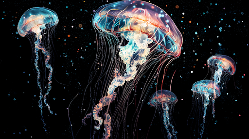Prikaži sve detaljeTapeta meduza | Šarene meduze plutaju u svemiru