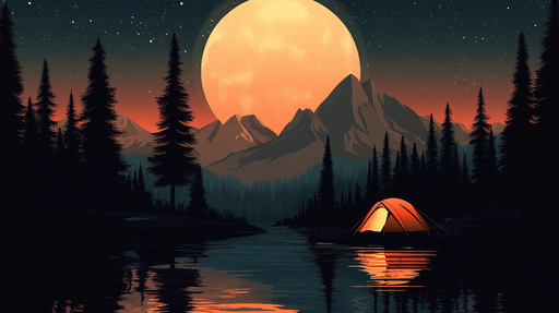 Prikaži sve detaljeTapeta za kampiranje | Šator ispod sjajnog punog mjeseca