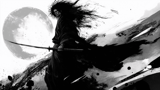 WonderMuralOva tapeta ističe veličanstvenog samurajskog ratnika, simbolizirajući snagu i odlučnost, s katanom u ruci i lepršavom kosom, ističući se na dinamič...
