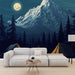 Ova zidna tapeta izaziva mirnu i spokojnu atmosferu, prikazujući noćno kampiranje okruženo veličanstvenim planinama. Dva šatora postavljena blizu logorske vatre stvaraju toplu i prijateljsku atmosferu, dok puni mjesec osvjetljava spektakularni krajolik, naglašavajući mir okolne prirode.