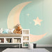Ova muralna tapeta prikazuje prekrasan uzorak nježnog mjeseca i sjajnih zvijezda, umotan u umirujuću paletu boja. Dizajn uhvaća suštinu mirnog noćnog neba, savršen za stvaranje sanjive i opuštajuće atmosfere u bilo kojoj sobi.