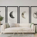 Ovaj zidni papir prikazuje elegantno uređenje lunarnih ilustracija, hvatajući ljepotu različitih faza mjeseca. Svaki okvir ističe suptilnu varijaciju sjene i svjetla, stvarajući fascinirajući vizualni efekt koji privlači pažnju. Nijanse crne i bijele, kombinirane s mekom teksturom, donose mističnu i umirujuću atmosferu u vaš unutrašnjost.
