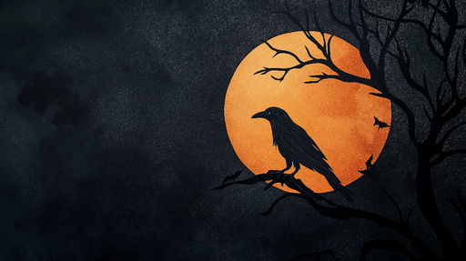 WonderMuralOva zavodljiva tapeta prikazuje siluetu gavrana koji sjedi na grani, ističući se nasuprot velikom narančastom krugu koji predstavlja puni mjesec. T...