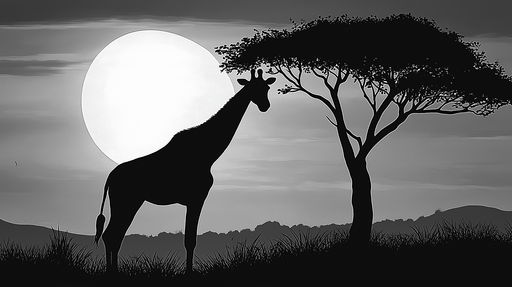 WonderMuralOva zapanjujuća muralna tapeta prikazuje veličanstveni silueta žirafe koja se ističe nasuprot velikom mjesečini. Monokromatski efekt stvara ambijen...