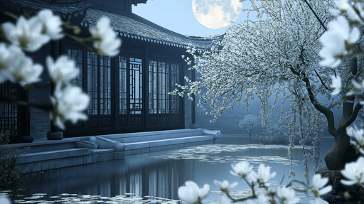Prikaži sve detaljeTapeta zen vrt | Mirno odražavanje tradicionalnog vrta pod mjesecom