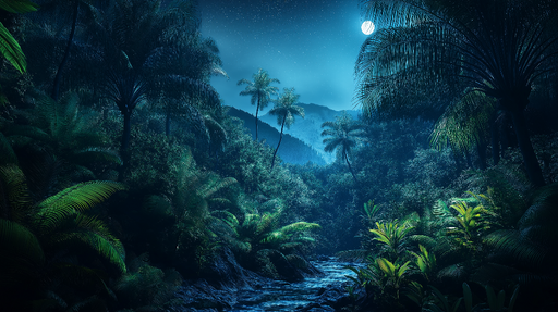 Prikaži sve detaljeTapeta noćna džungla | Umirujuća scena džungle pod mjesecom
