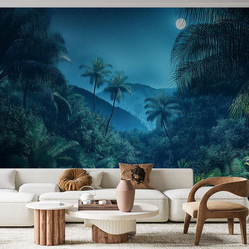 WonderMuralOva muralna tapeta doziva prekrasan prizor noćne džungle, okupane u mekom svjetlu mjeseca. Veličanstvene palme stoje usred bujne vegetacije, stvara...