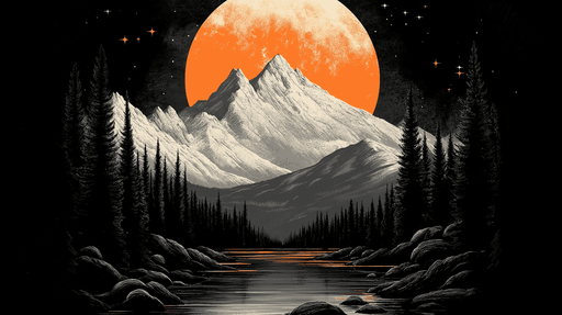Prikaži sve detaljeTapeta planinski krajolik | Veličanstvene planine pod narančastim mjesecom