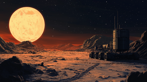 Prikaži sve detaljeSvemir Tapeta | Vanzemaljski krajolik s roverom i divovskim mjesecom
