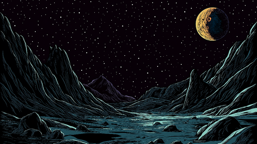 WonderMuralOva veličanstvena tapeta prikazuje zadivljujući mjesečev krajolik, gdje tamne planine kontrastiraju sa zvjezdanim nebom. Prisutnost sjajnog mjeseca...