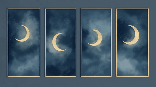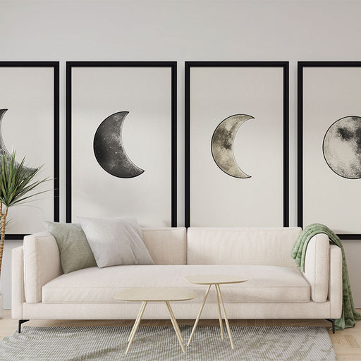 WonderMuralOvaj zidni papir prikazuje elegantno uređenje lunarnih ilustracija, hvatajući ljepotu različitih faza mjeseca. Svaki okvir ističe suptilnu varijaci...